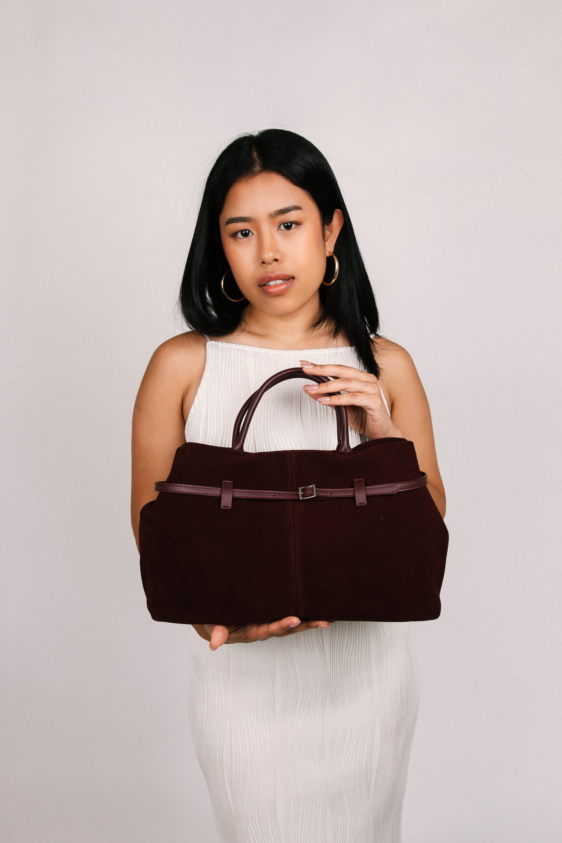 The ELENA handbag by VENNEKA is a refined take on timeless design, crafted exclusively from luxurious burgundy suede leather for a soft, elegant finish. With its streamlined interior and versatile structure, ELENA offers both beauty and ease for modern, on-the-go lifestyles.