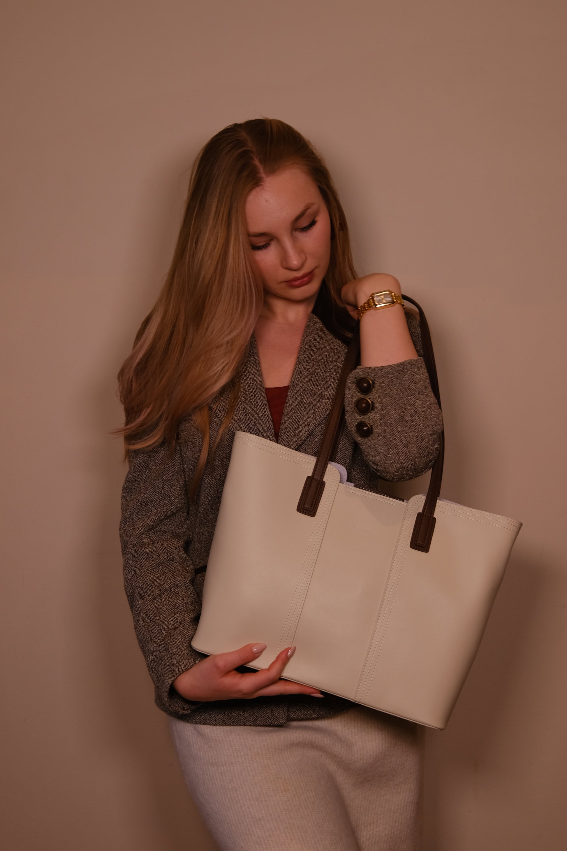 This is the carry-everywhere tote bag you’ll reach for every single day. With its clean lines, smooth split leather, and just the right amount of structure, the VICTORIA is effortless style in tote bag form. She's built to carry your life - laptop, notebook, water bottle, and the extra “just in case” things - without looking bulky or feeling fussy.